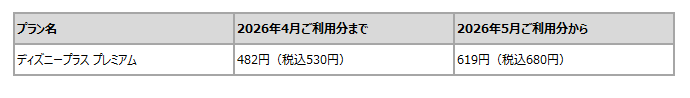 ディズニープラス 月額料金改定のお知らせ